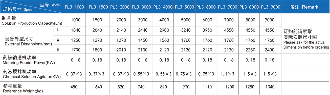 PL3-automatiske tre-boksen pulverforberedelsessystem er delt inn i en oppløsningstank, en herdende tank og en lagringstank. Det kan kontrolleres manuelt eller automatisk. Systemet er kompakt i struktur, kan betjenes automatisk, og preparatkonsentrasjonen er justerbar.